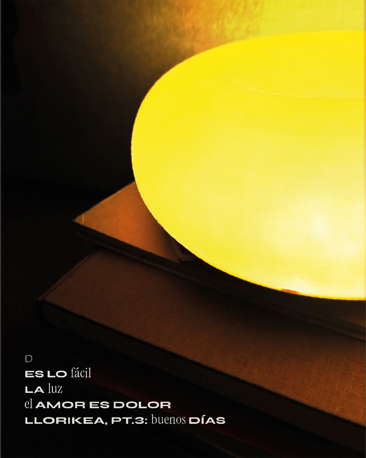 Llorikea es la necesidad de anidar en un hogar definitivo. Es una mudanza definitiva a Madrid, esa ciudad llena de traumas y expectativas, pero que, a pesar de todo, siempre me ha recibido con los brazos abiertos. Cuando convives con una persona, surgen a flote todas las caras, todas las historias, y fue aquí donde yo necesité restaurar todos los rasguños. Necesité hacer una visita a mi yo de 5 años y cuidarle mucho. Llevaba una temporada escuchando electrónica e IDM de los 90, y pensé: toda esta música ya estaba ahí, y si mi yo de 5 años hubiese podido encontrarla en ese momento, mi vida habría sido diferente. Llorikea es curación a través de la música: la música que no escuché cuando la necesitaba, a través de los oídos de mi yo actual, para mandármela de vuelta a mí mismo en aquellos años.